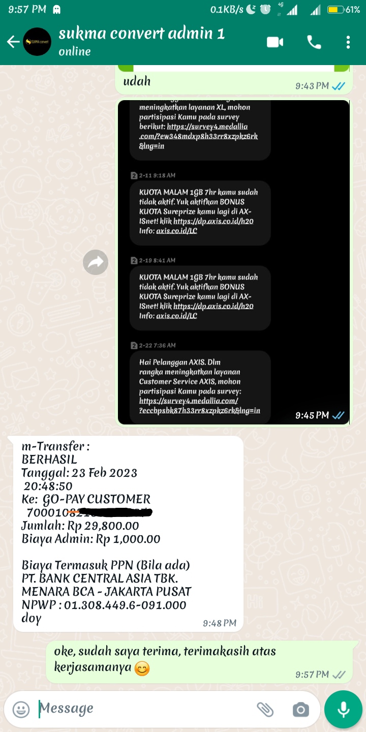 Terima kasih kak reza untuk ulasan positifnya. Kami tunggu transaksi convert pulsa selanjutnya
